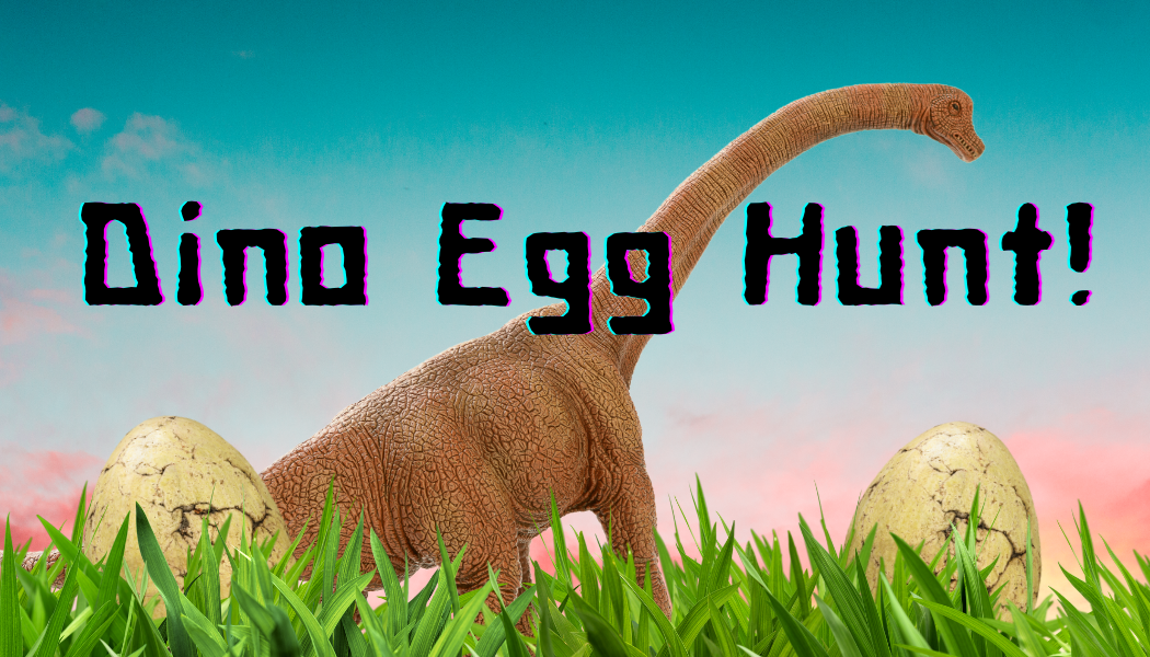 Dino Egg Hunt Saturday, Nov. 13th at 2:00PM Library Front Lawn, weather permitting Kids 12 and younger, join us on the library lawn with a blanket or chair for dino stories and a dino egg hunt. Don't forget to bring a bag to hold your dino eggs. **Weather permitting. This program will be canceled in the even of rain or extreme heat.**