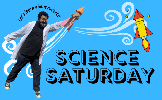 Science Saturday Saturday, Nov. 6th at 10:30AM Library Front Lawn, weather permitting Kids in grades 2-6, join Joe the Science Bro and learn about the exciting science of rockets! You'll get to build your own rocket and launch it outside! Registration is not required, but seating will be limited to the first 20 attendees. **Weather permitting. This program will be canceled in the event of rain or extreme heat.**
