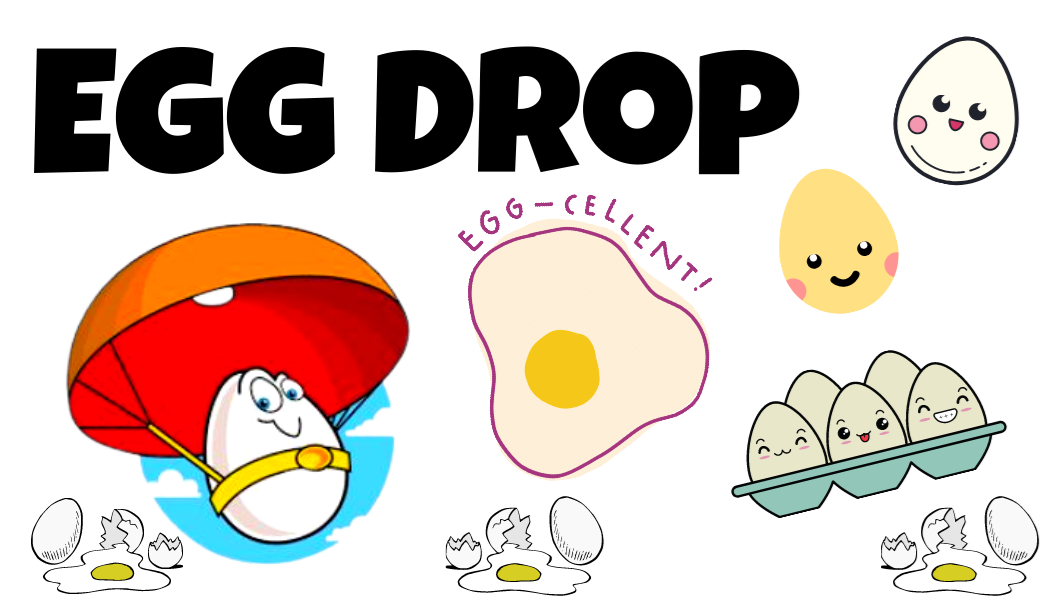 Egg Drop Challenge Saturday, March 19th at 10:30AM Outside behind library Kids in grades 2-6, join us for an egg-citing egg drop challenge! Build a vessel with the provided materials that will protect your egg from cracking when dropped from 14 feet high! No registration is required, but seating will be limited to the first 20 attendees. We will meet outdoors in the grassy area behind the building.