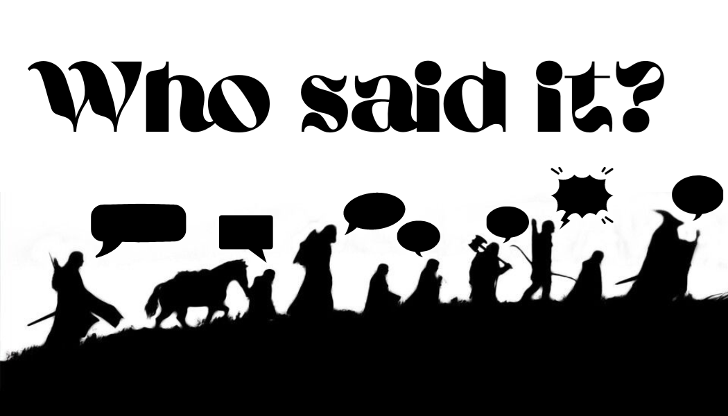 Match the Quote Game Tues: Sept. 3rd - Wed: Sept. 25th Library Lobby How well do you know The Lord of the Rings trilogy? Can you quote the movies? Stop by to try your chance in matching the quote to the character. Quotes will be taken from The Fellowship of the Ring, The Two Towers, and The Return of the King films. One entry per person. Each entry is a chance to win a prize. For all ages. Winners will be contacted on Thursday, September 26.