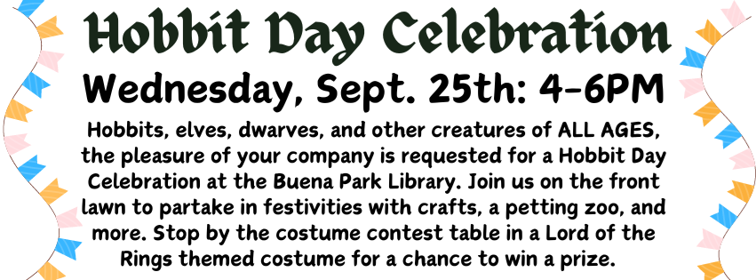 One Reading Challenge to Rule Them All Tues: Sept. 3rd - Mon: Sept. 30th Beanstack website or app Calling all readers of Middle Earth! Read books or listen to audiobooks and write reviews for a chance to win a grand prize! For each completed title, you will be asked to write a brief review (1-2 sentences) to earn a badge. Each badge is your entry to win a grand prize. Participants who complete all 5 reviews will receive 5 extra prize entries! Winners will be notified by Saturday, October 5th.
