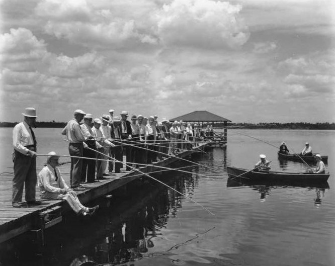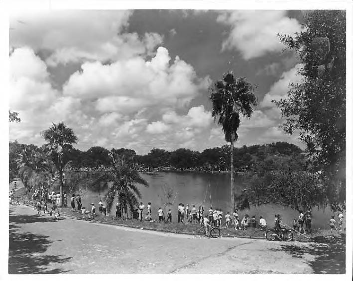 March 2025 Focus: Fishing in Florida "Fishathon" at Lake Roberta in Lakewood Manor with young anglers along shore : Tampa, Fla. 1948 Burgert Brothers Photographic Collection PA 2393