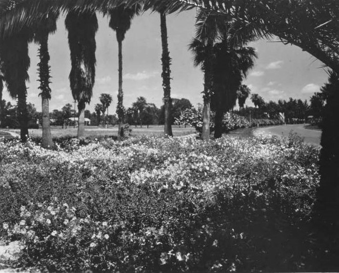 August 2025 Focus: Flowers Flowers and lady at Lake Carroll (Knowles): Tampa, Fla. Burgert Brothers Photographic Collection PA 16772