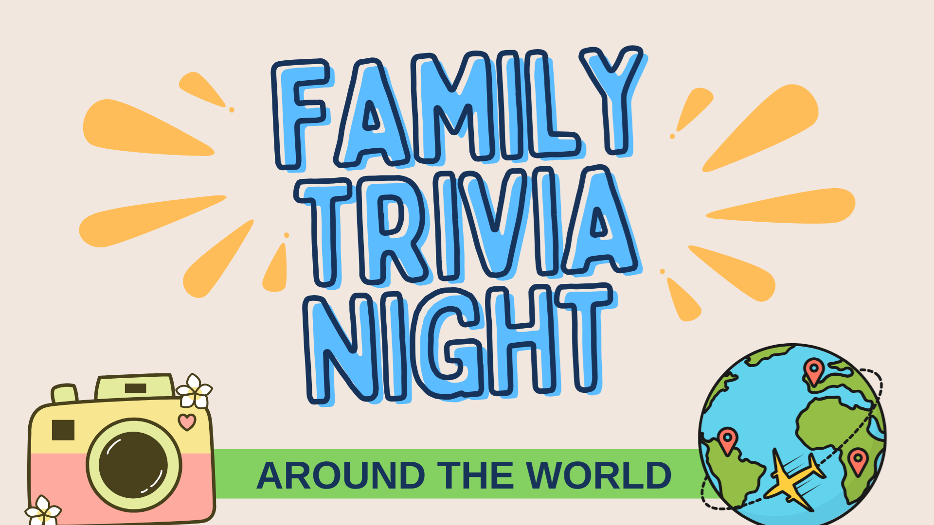 Family Trivia Night - Around the World Max of 6 per team, you must register. All ages are welcome. 3 rounds. Snacks, drinks, and pizza will be available. Wednesday, March 18th | 6:00 pm Humphrey Community Centre (upstairs) 15 Humphrey Drive, Seguin