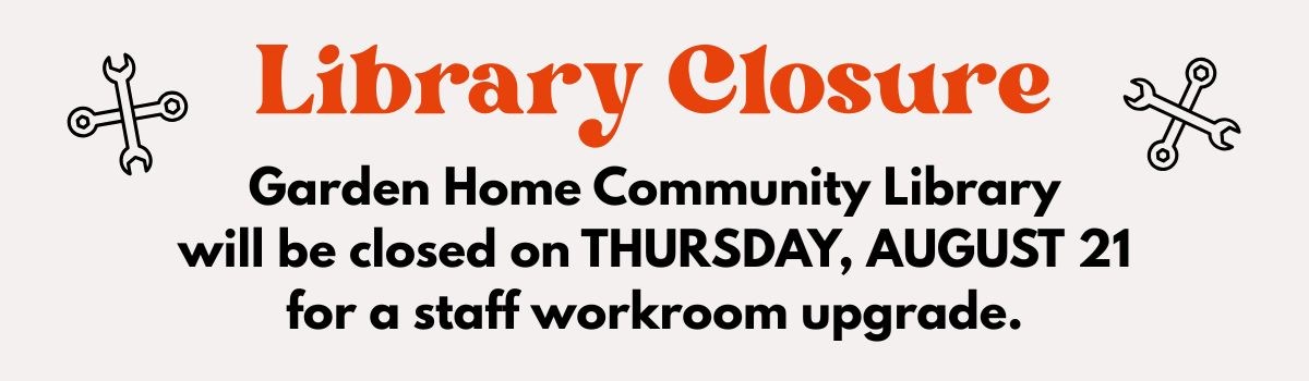 Thursday, August 21 - Garden Home Library CLOSED for staff room upgrade