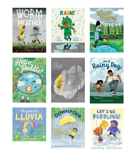 "Enjoy books that celebrate puddles, rain boots, and wet-weather adventures! "