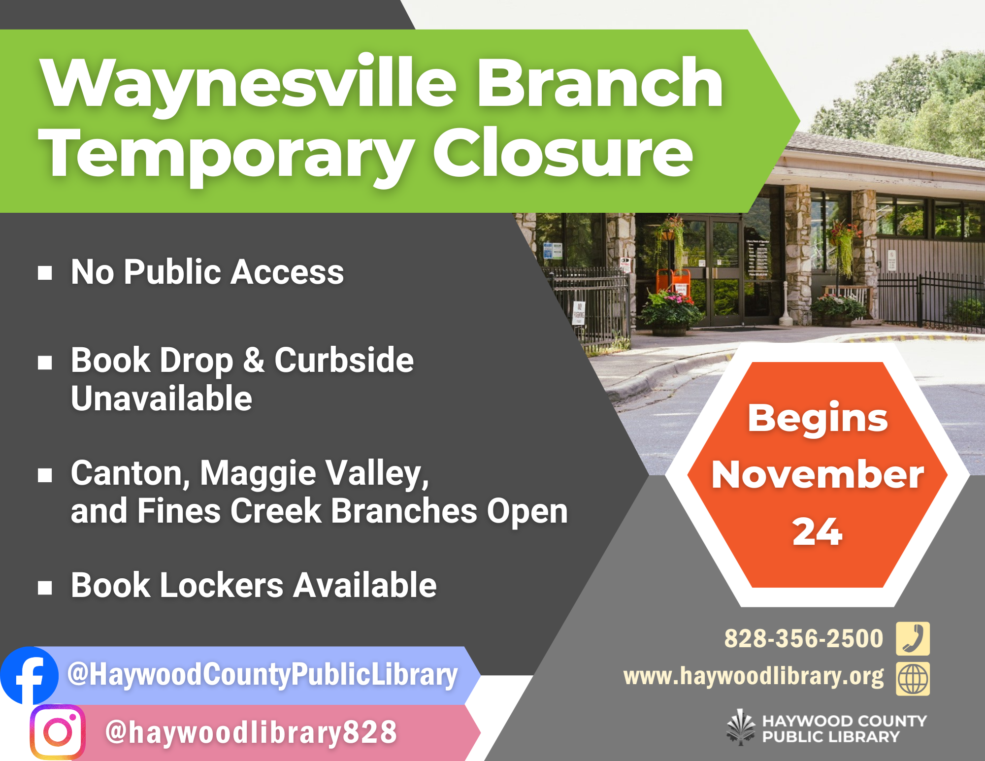 Waynesville branch will be temporarily closed for the replacement of the roof and HVAC system.