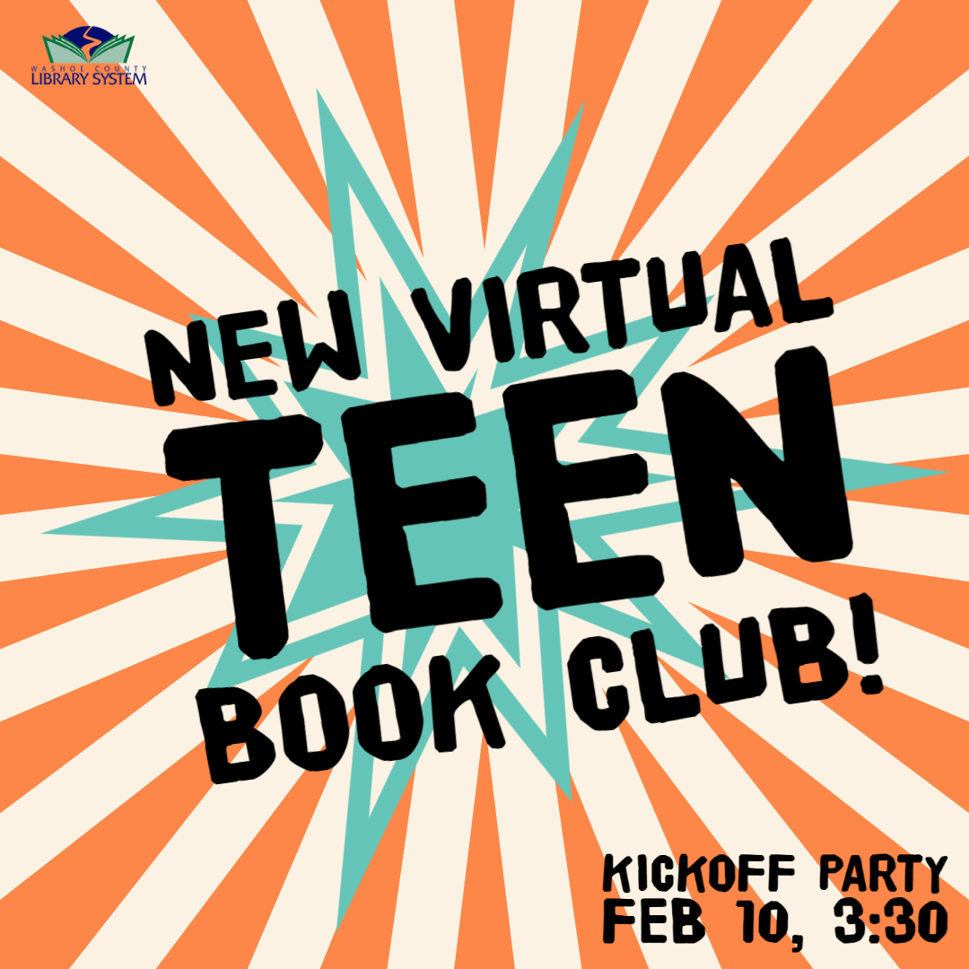 Wednesday, March 10, 4:30 pm Attention Teens (grades 9-12): Join us for a casual, fun, no-pressure book club where you read what you want! Join in to hear recommendations and new ideas. Teen Book Club meets on the second Wednesday of the month using Zoom. Register today to receive Zoom meeting information.