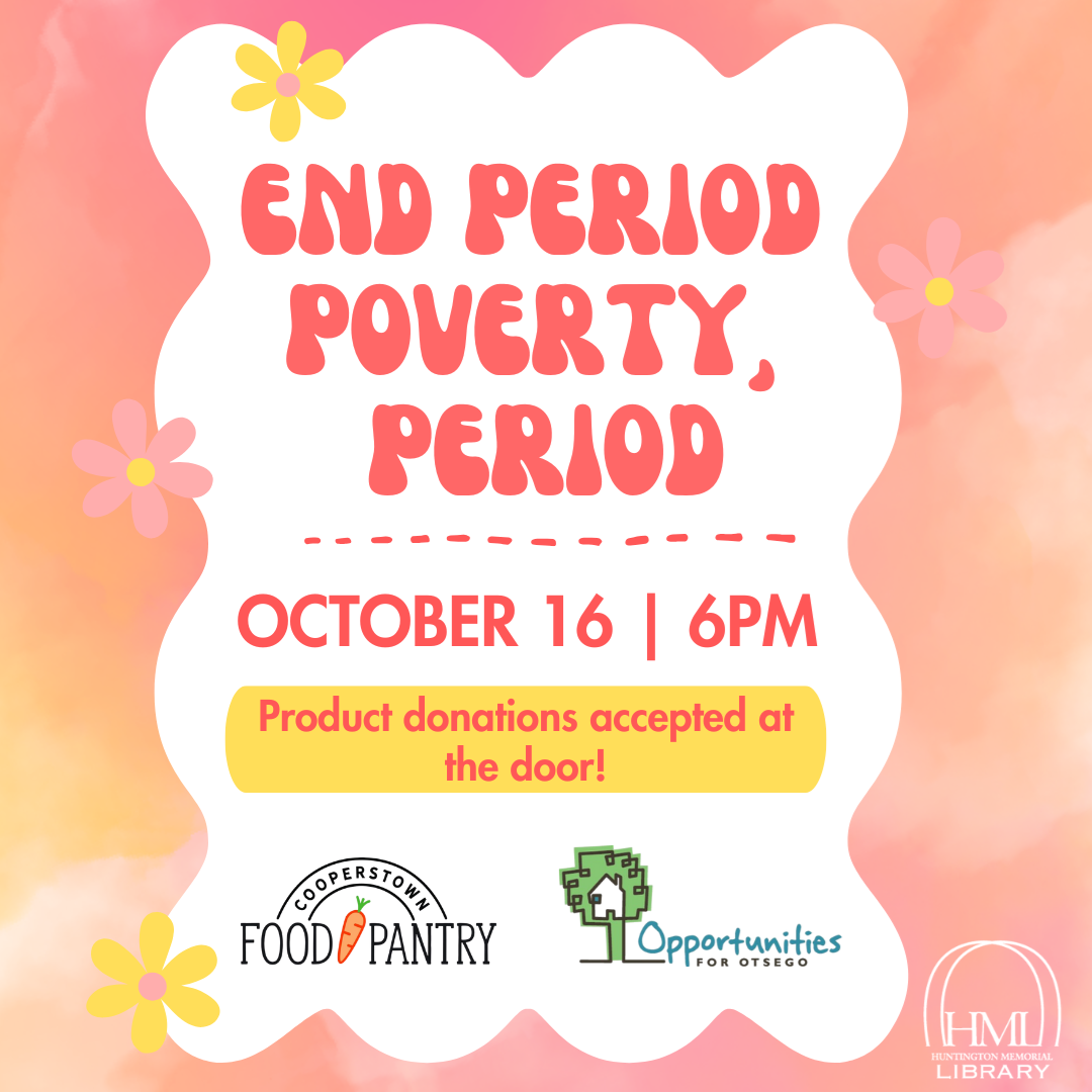 Educators from Cooperstown Food Pantry and Opportunities for Otsego will share how period poverty impacts individuals and families, and what their organizations are doing to support neighbors in need.