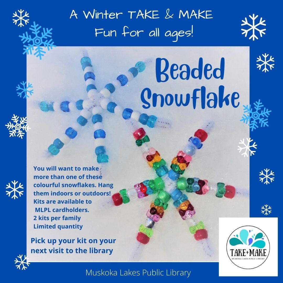 Drop-in CraftFriday, February 3 is a P.A. day in Muskoka. Come into the library at 11:00 a.m. and make a beaded snowflake to make and take! Can't make it on Friday? Come into the library during the following day where, as part of Port Carling Winterfest, you can make one of these beauties with your friends and family!