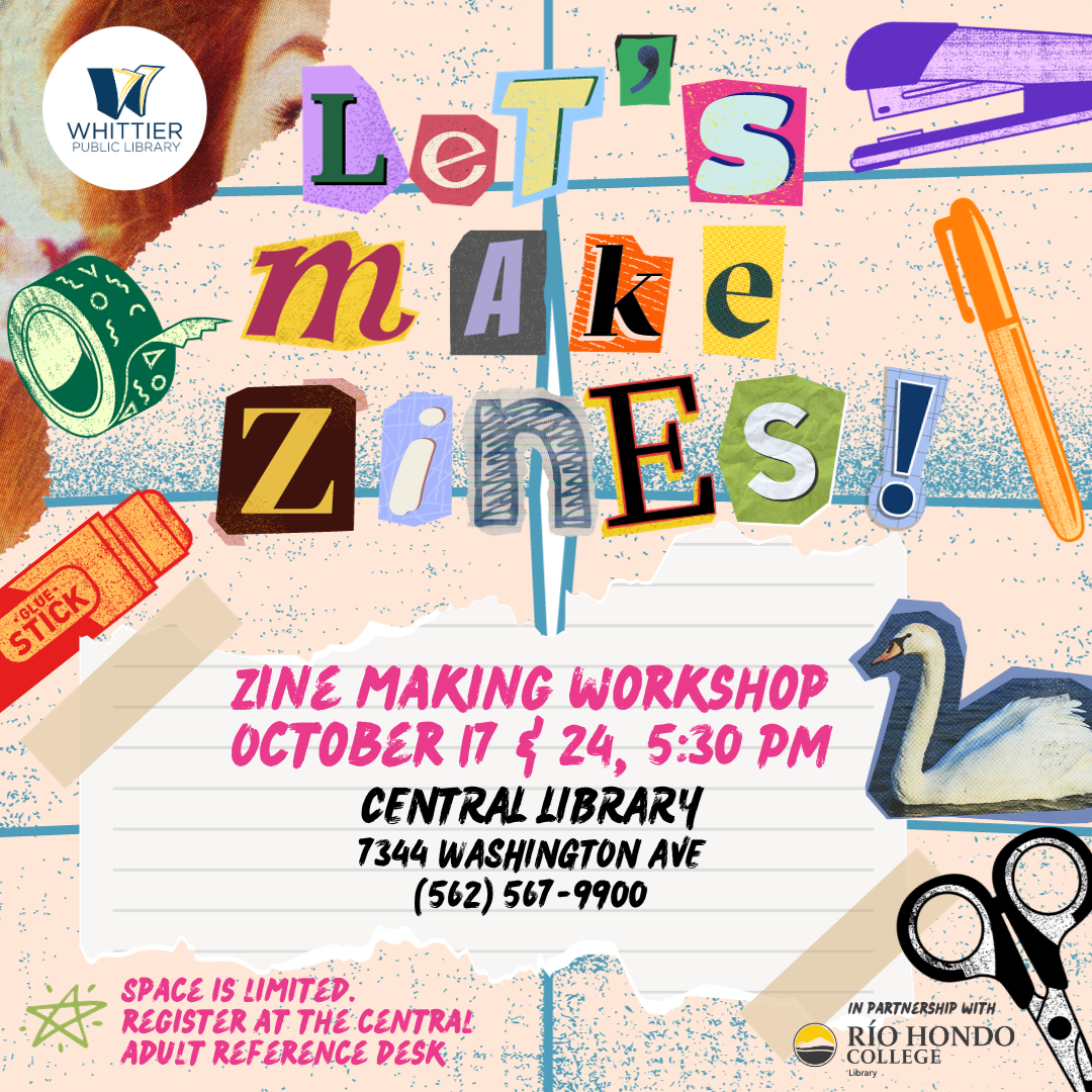 In the coming months, the Whittier Public Library will serve as a hub of creativity and inspiration by hosting a series of Zine workshops scheduled for October and November. These workshops are designed to nurture storytelling skills and encourage the crafting of unique narratives that reflect the rich tapestry of our diverse community.