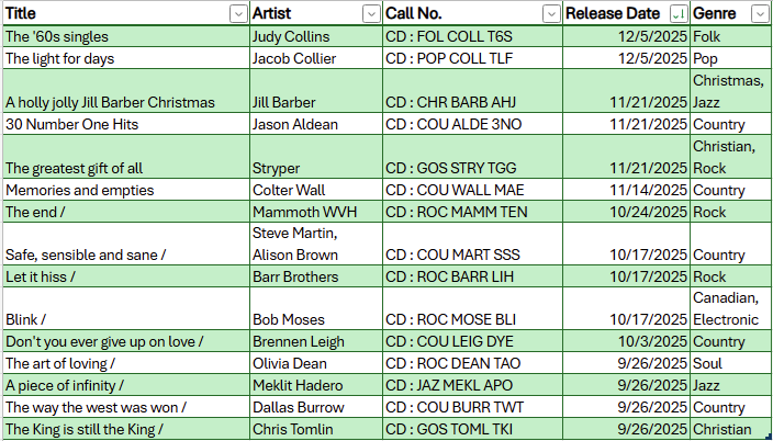 Ready to be festive for the holidays? We have a "Christmas" or holiday CD collection! Many more holiday albums can be freely borrowed via the Hoopla app as well.