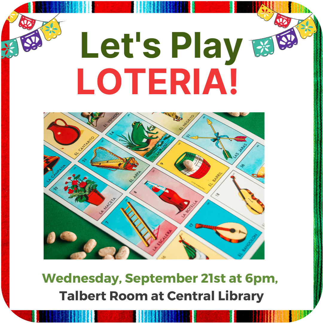Let's Play Loteria! Wednesday, September 21, 6pm Central Library Talbert Room