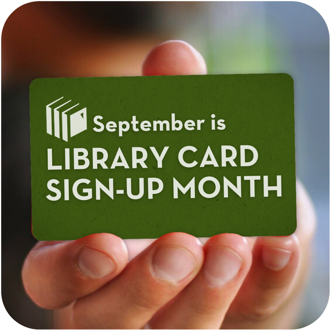 National Library Card Sign-Up Month Get a Welcome to the Library goody bag when you sign your kiddos up for a new card!