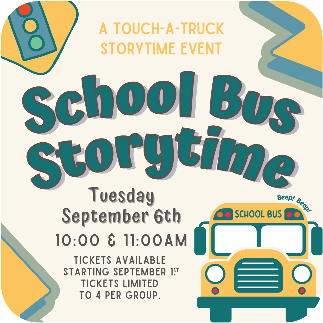 School Bus Storytime: Touch-a-Truck Event Tuesday, Sept. 6, 10 & 11am Central Library Tabby Theater Advance tickets (free) available starting September 1.