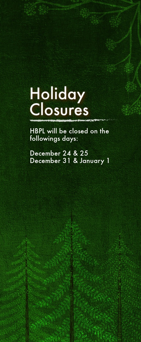December Events for Adults @ HBPL Hello December! With the holidays just around the corner, we’ve got some exciting events to help you prepare! Join our Gift Wrapping Techniques Class, paired with our Makerspace sessions, to pull the perfect gifts together for your friends and family. Our Central Book Club this month will be discussing In Five Years by Rebecca Serle, and our Walking Audiobook Club offers a great opportunity to learn about everyone’s favorite audiobooks! With the busy days up ahead, don’t forget to take some time to self-care with our Bibliotherapy Bags, which provide therapeutic crafts and activities for a healthier mindset, and don’t forget to visit our Veterans Resource Center for information, assistance, and more. Register for all these events and more on our calendar. Check out all of our virtual events for adults and register online using the calendar button below.