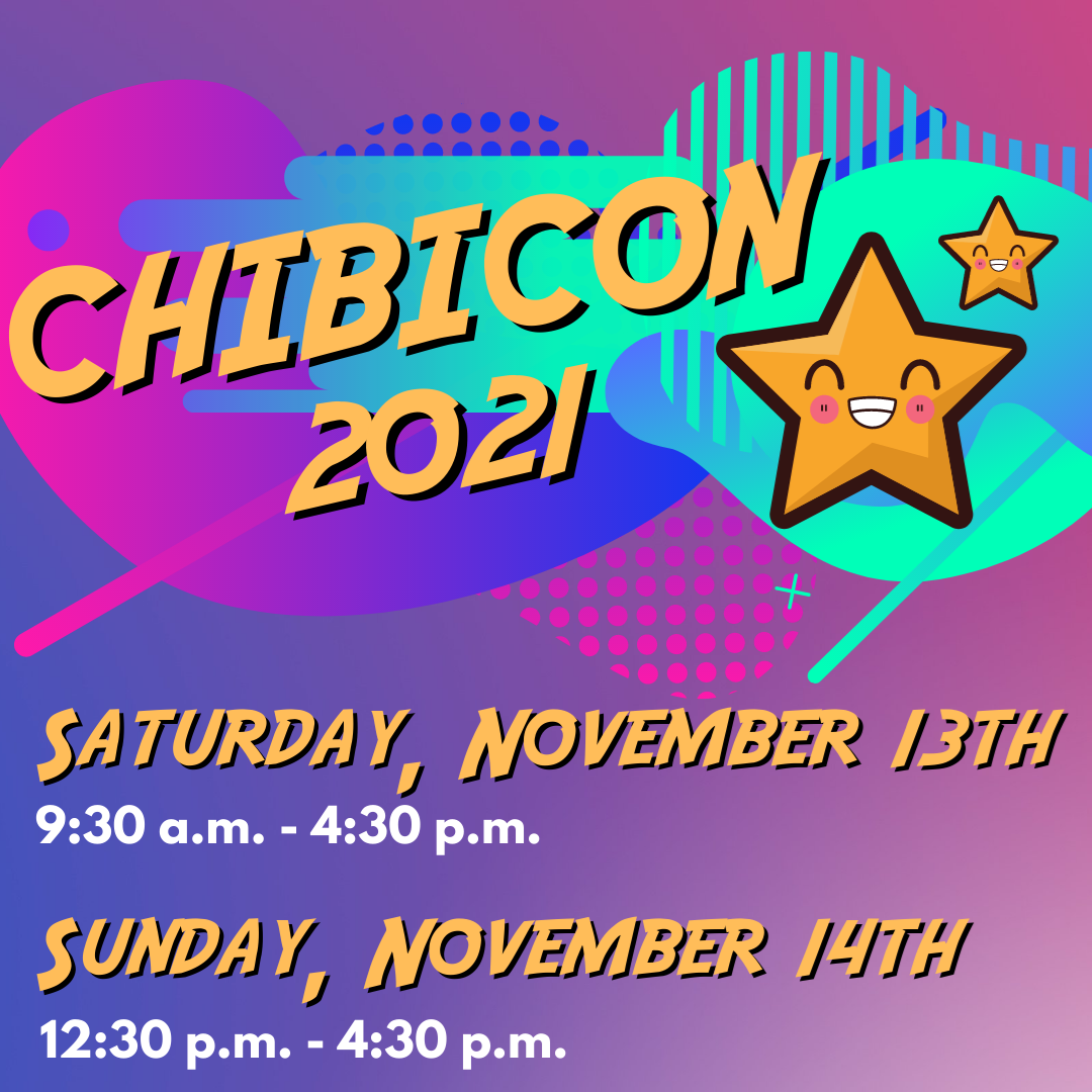 Chibicon 2021 Central Library Saturday, November 13 | 9:30 am - 4:30 pm – Register! Sunday, November 14 | 12:30 – 4:30 pm – Register! ChibiCon, Springfield City Library’s celebration of Anime and Comics culture is back and better than ever! This year we continue to offer the best in animated entertainment - and it’s completely free! For more information, visit our website!