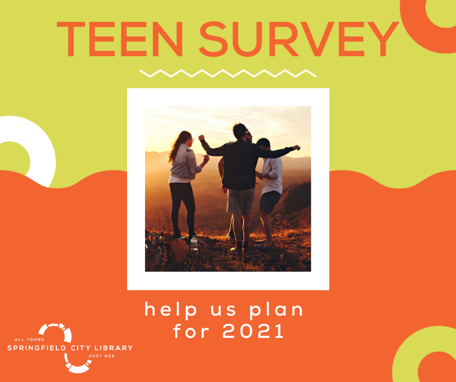 Survey for Teens & Tweens Help us plan for 2021! If you’re a teen or tween between the ages of 11 and 18, we want to hear from you! Take the survey and tell us what YOU want to see from us in the year to come. tinyurl.com/SCLteensurvey
