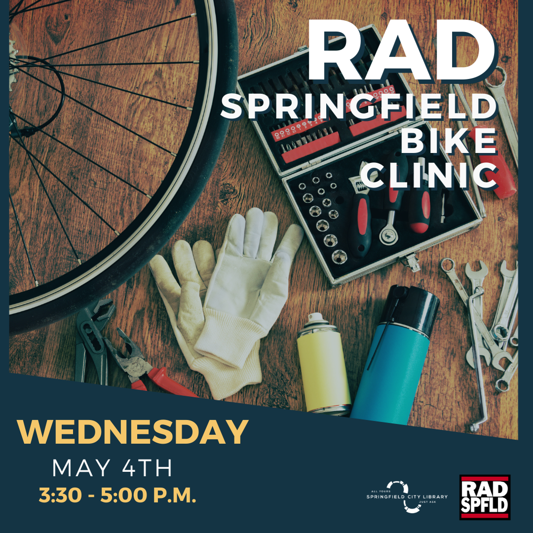 Wednesday, May 4 | 3:30-5:00 PM | Ages 11-18 |Forest Park Branch Do you have a bike in the basement/garage that could use a little love? Hate spending all that money at a bike shop when you know you could probably do it yourself? Come to the Forest Park Library on May 4th to learn how to fix your bicycle or learn how to build your own! RADSpringfield bike experts will be on onsite to answer questions, take care of your repairs or to accept bike donations to be refurbished.