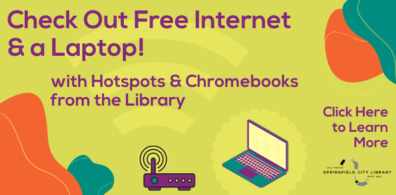 The Springfield City Library has introduced Google Chromebook laptops into circulation in an effort to expand access to technology within the community. The Chromebooks can be borrowed separately or paired with one of the wireless hotspots. These Chromebooks are available to be borrowed free of charge with an active library card. The Google Chromebooks are available to borrowers 18 years of age and older who are in good standing with the library. They may be borrowed for 14 days and are available on a first come, first served basis. Each Chromebook comes with a power cord and sturdy carrying case and can be operated with an existing Google login or guest option. Chromebooks are available at all Springfield Library locations; please check the link or call your local branch to check on availability. Borrowing a Chromebook and wireless hotspot together make the perfect pair for internet access at home. |