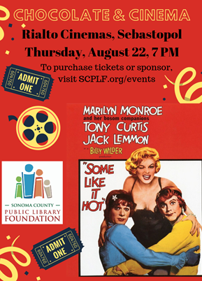 Sonoma County Public Library Foundation Thursday, August 22, 7 PM Rialto Cinemas, Sebastopol Tickets include bag of popcorn & chocolate. All proceeds from this fundraiser benefit the Sonoma County Library.