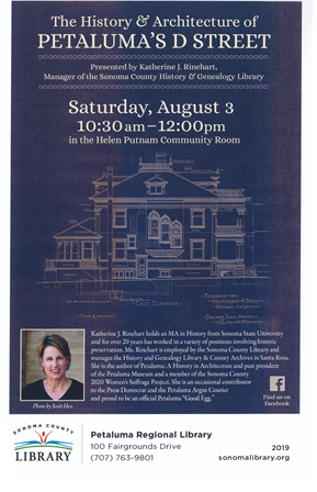 Presented by Katherine J. Rinehart Saturday, August 3 Petaluma Regional Library 10:30 AM to 12 PM