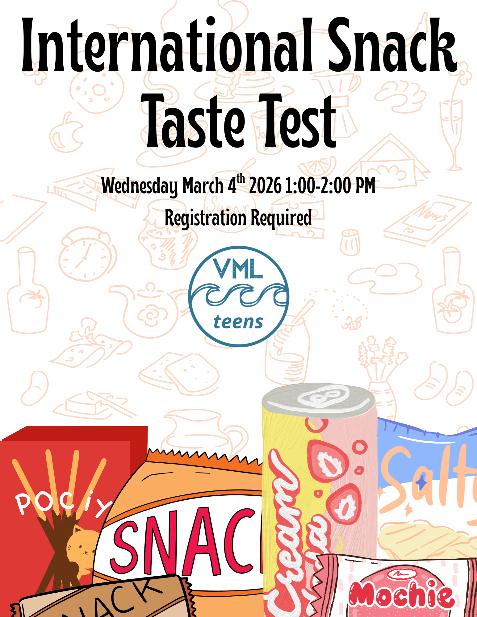 Wednesday, March 4th, 1:00-2:00 p.m. Looking to try something you might not have had before? Consider coming to Teen Zone's international snack taste test. Try a variety of different snacks and rank your favorites. Grades 6-12 Only. Registration Required