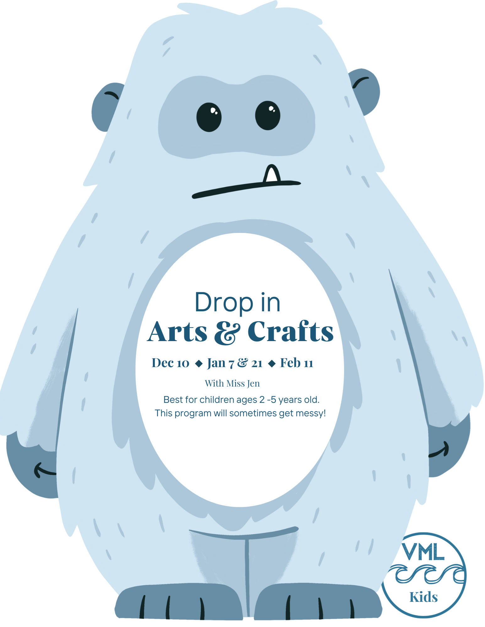 Wednesdays, January 7th and 21st, 10:00 a.m. Children will create fun process art, or simple child led crafts alongside their caregivers. This event is best for children ages 2 to PK, though younger and older siblings are always welcome. This program will sometimes get messy! No registration required.