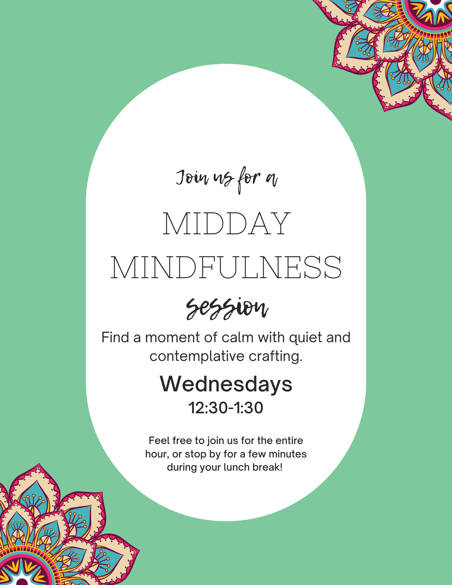 Start the new year off right with an hour of intentional rest and art. Take a pause during your day to practice a brief meditation or breathing exercise, then try your hand at a mindful art activity. Suitable for all skill levels. Come for the whole hour or stop by during your lunch break!