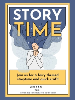 Fairy Storytime Wednesday, June 5 & 12 from 11:00 - 11:45 a.m. Join us for a fairy themed storytime and craft! No registration required, while supplies last. Stories vary; crafts remain the same.