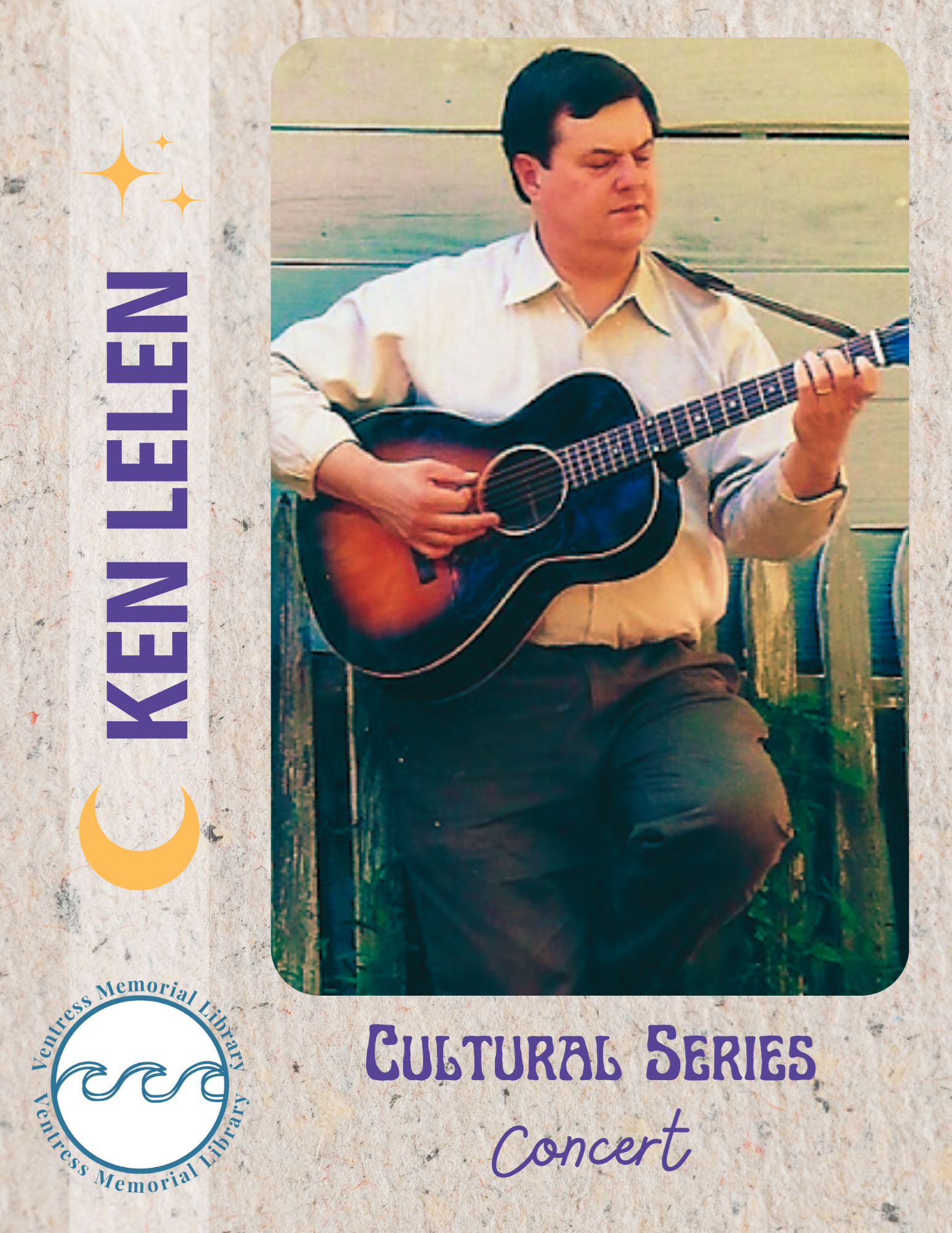 The Moon, the Stars, and You with classic guitarist Ken Lelen Saturday, October 7 from 2:00 - 3:00 p.m. To celebrate the upcoming eclipse, join us for a special concert, with songs to summon the moon and stars with classic love songs like Blue Moon, Fly Me To The Moon, As Time Goes By, It’s Only A Paper Moon, Moonglow, Moon River, Stars Fell On Alabama, Beyond The Sea, Old Cape Cod, Stardust, and more!