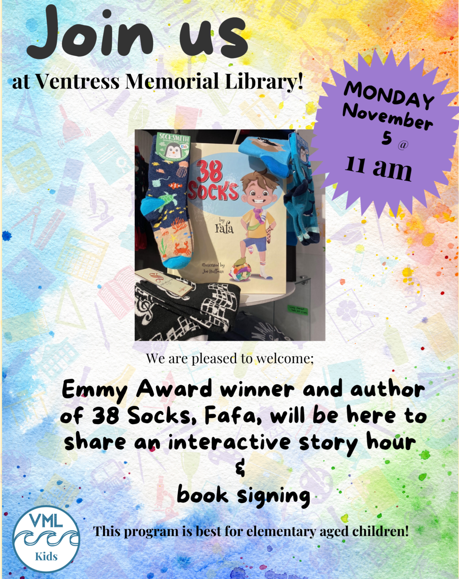 Tuesday November 5 at 11:00 AM The library is thrilled to welcome local author Fafa for a fun, interactive storytime and book signing for elementary aged children and their caregivers! Fafa's book will be available for purchase during the event.