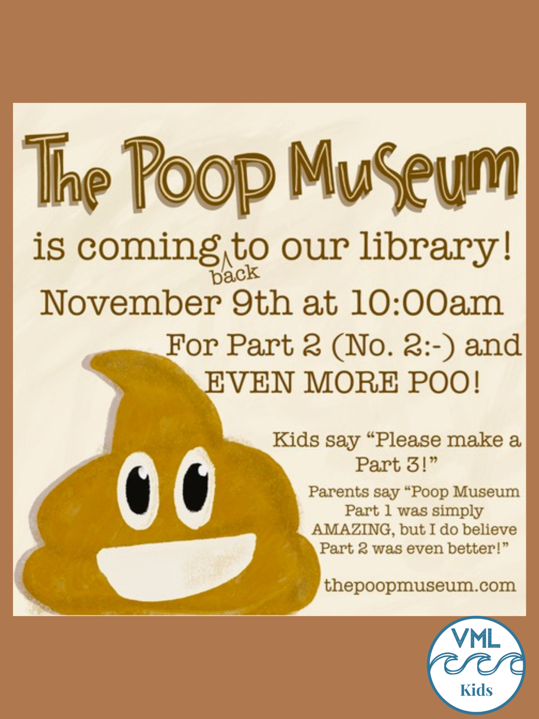 Saturday, November 9th at 10:00 AM Fans of The Poop Museum Part One, will adore The Poop Museum Part Two! In Part Two, as the title suggests, there is EVEN MORE POO! And even more super interesting butts! It’s a great opportunity to learn more and laugh more, in another perfect combination of solid science and scatological silliness. We hope you’ll join us! This program is best for children ages 4-9. Registration Required.