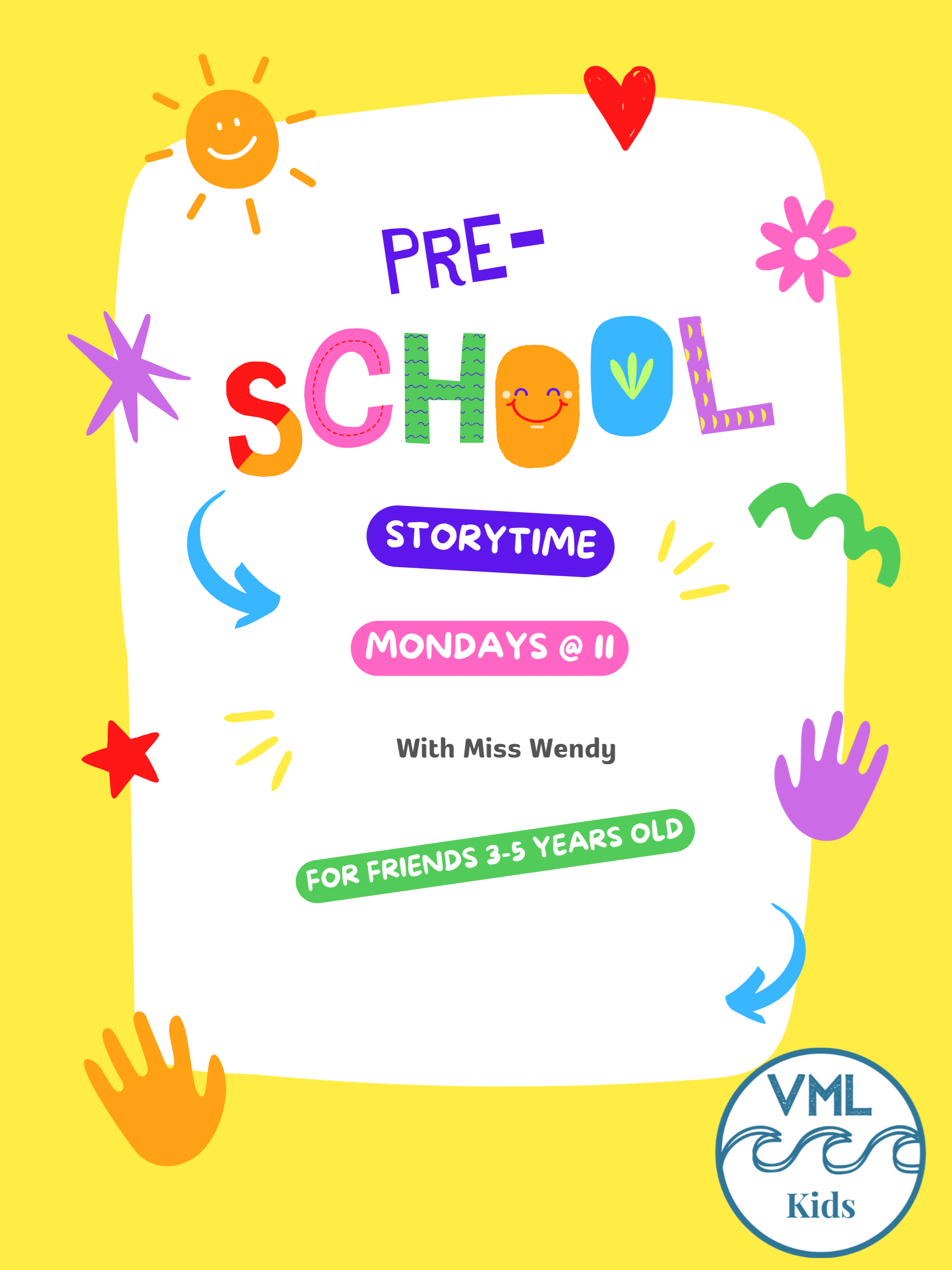 Mondays at 11:00 AM Storytime with Miss Wendy continues through November! Join us in the Children's Program Room for stories, songs and socialization. For friends ages 3 - 5 years old.