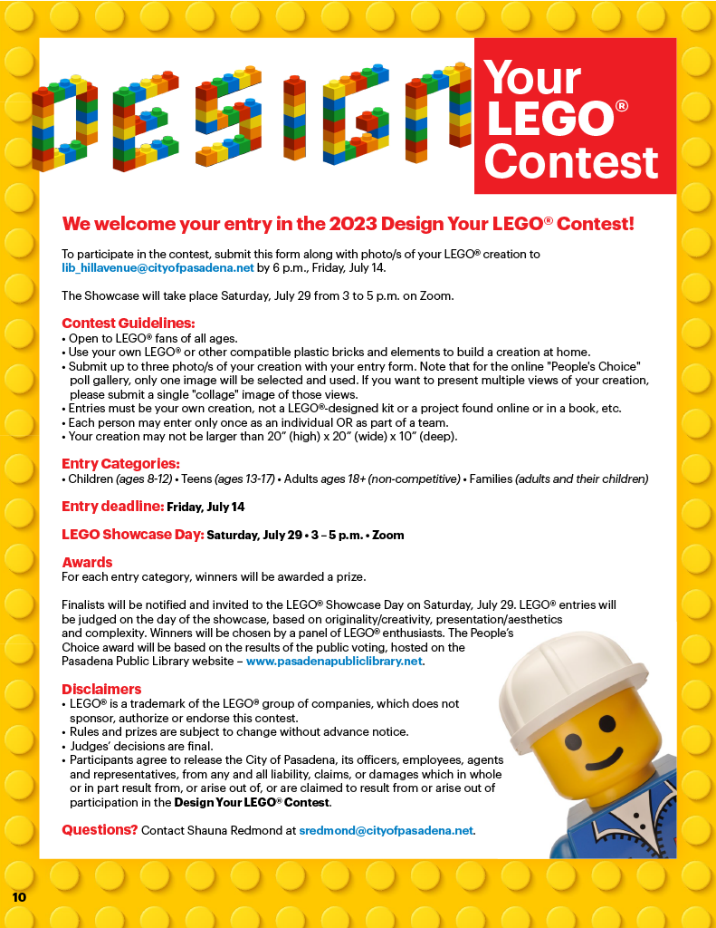 For Ages 15+. We are hiring! Pasadena Public Library is accepting Library Page applications. As a page, your main responsibility will be shelving library material and keeping items organized. For more information, click the link above.