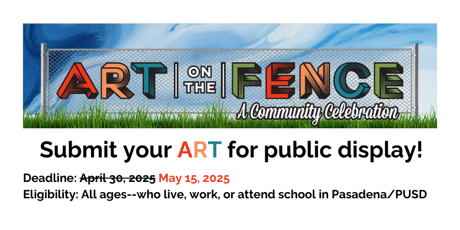 Create an image featuring your favorite library, book or book character. Artwork will be displayed on the fence and later in the exhibit space when the library reopens. Designs can be about anything related to the library, Pasadena, literature, or the Pasadena community.