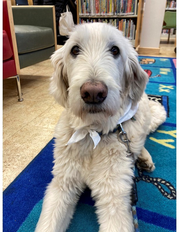 Practice reading in a positive, non-judgmental space with Bernardo or Fillmore, Pet Partners-certified therapy dogs. Each dog makes separate monthly visits with his person, Lesley. Call us to find out more.