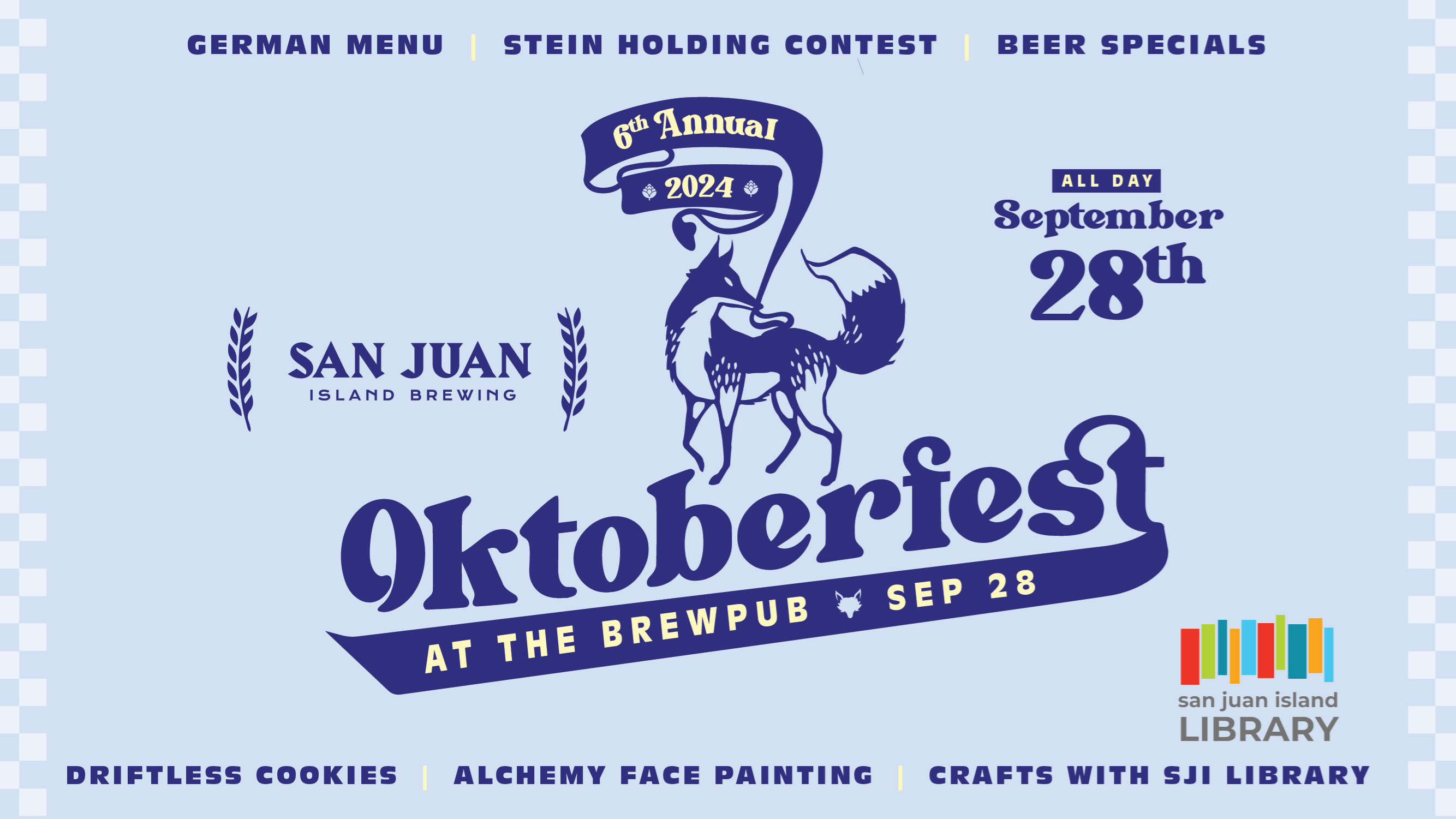 Oktoberfest Saturday, September 28th Join the Library at the San Juan Island Brewing Company's 6th annual Oktoberfest on Saturday, September 28th. The Library will be there with a Lego building table and a craft activity from 12:00 - 4:00pm.