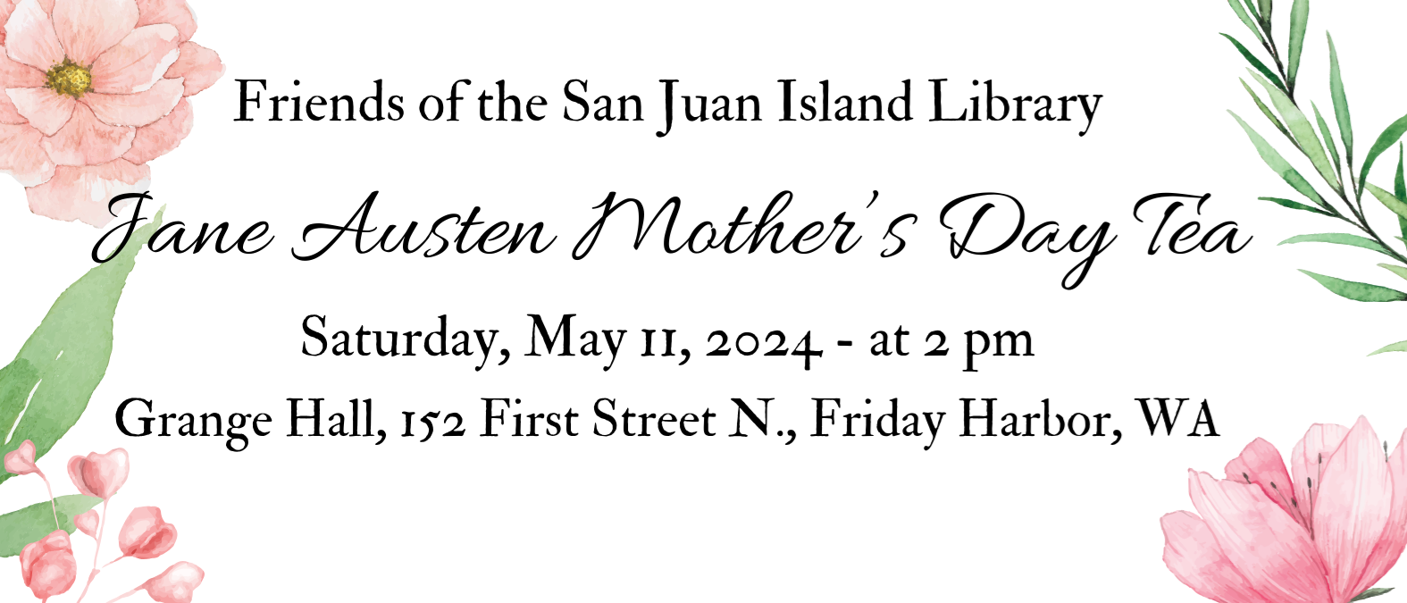 Austenian Mother's Day Tea Join the Friends of the Library on May 11th to embrace the art of tea in an afternoon of sumptuous savory and sweet delights, with tea brewed to perfection and services in an atmosphere of Victorian elegance. Delights include a presentation on Mansfield Park by Heidi Green and Celtic Harpist Chase Anderson. Get your tickets now!