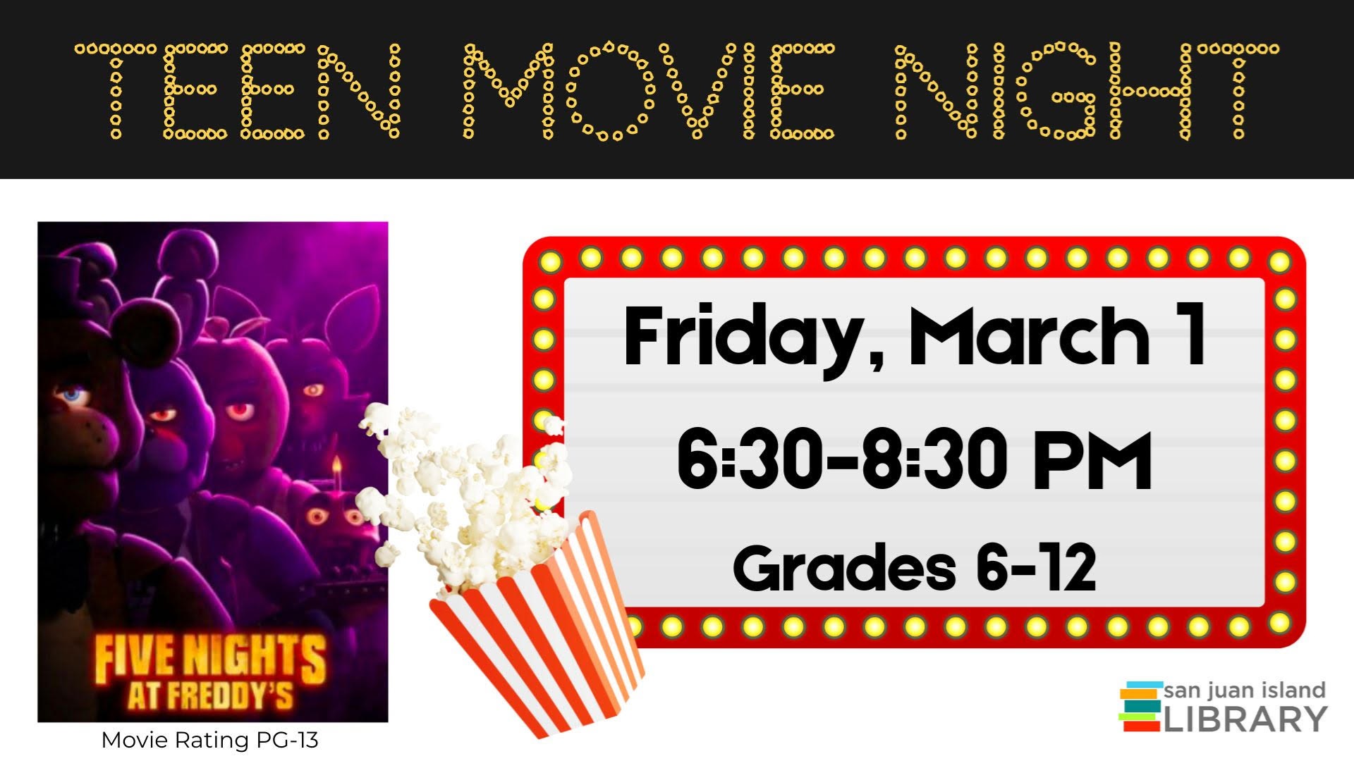 TEEN MOVIE NIGHT Friday, March 1st @ 6:30 pm Library Main Salon