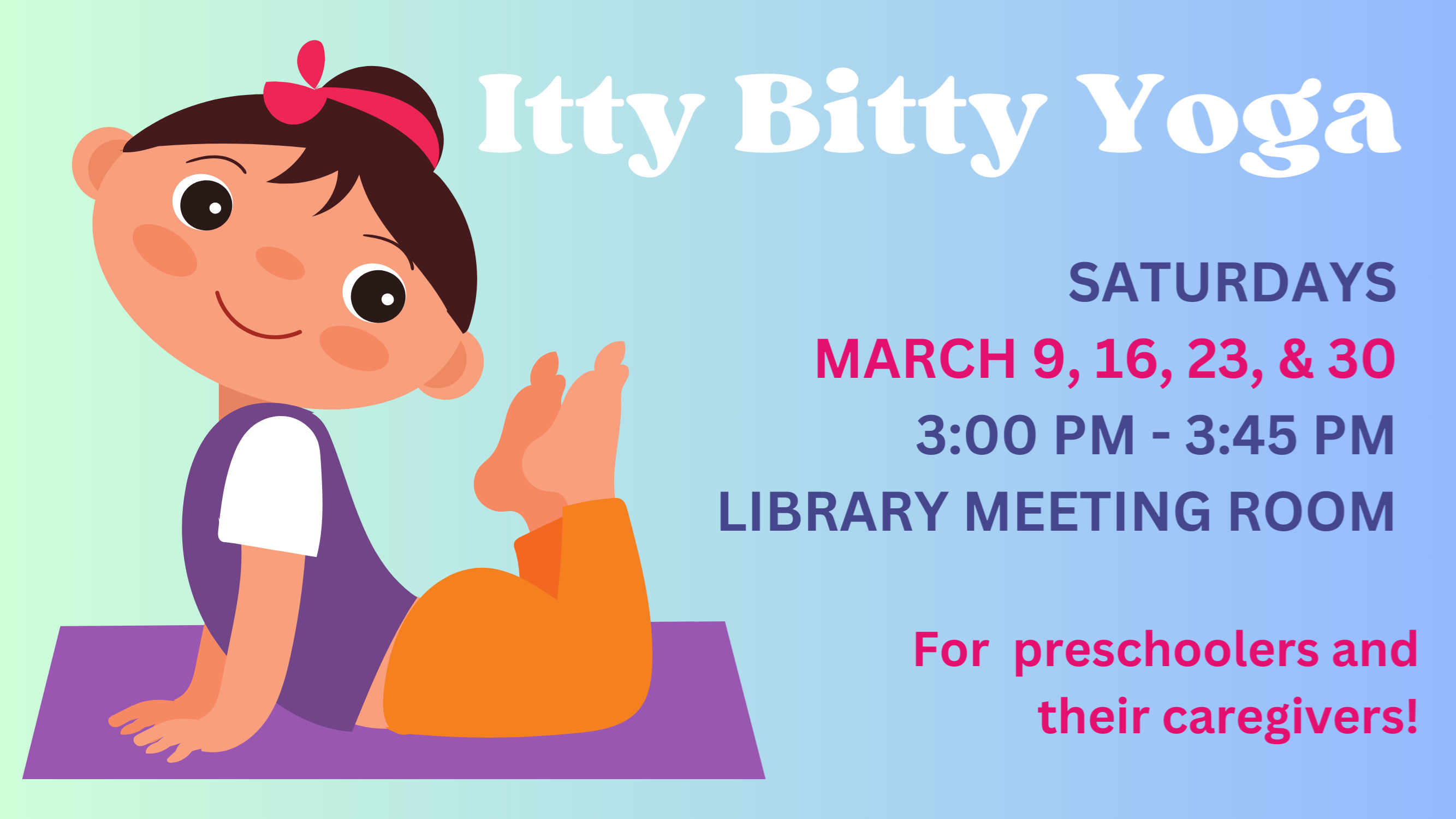 ITTY BITTY YOGA March 9th, 16th, 23th, & 30th @ 3pm Library Meeting Room