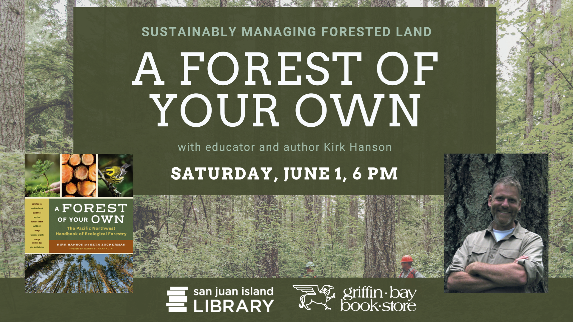 A Forest Of Your Own Join forest educator and author Kirk Hanson on June 1st at 6pm as he explores key insights from his book on managing forested land sustainably. Held at the Library and sponsored by the San Juan Island Library and the Griffin Bay Bookstore.