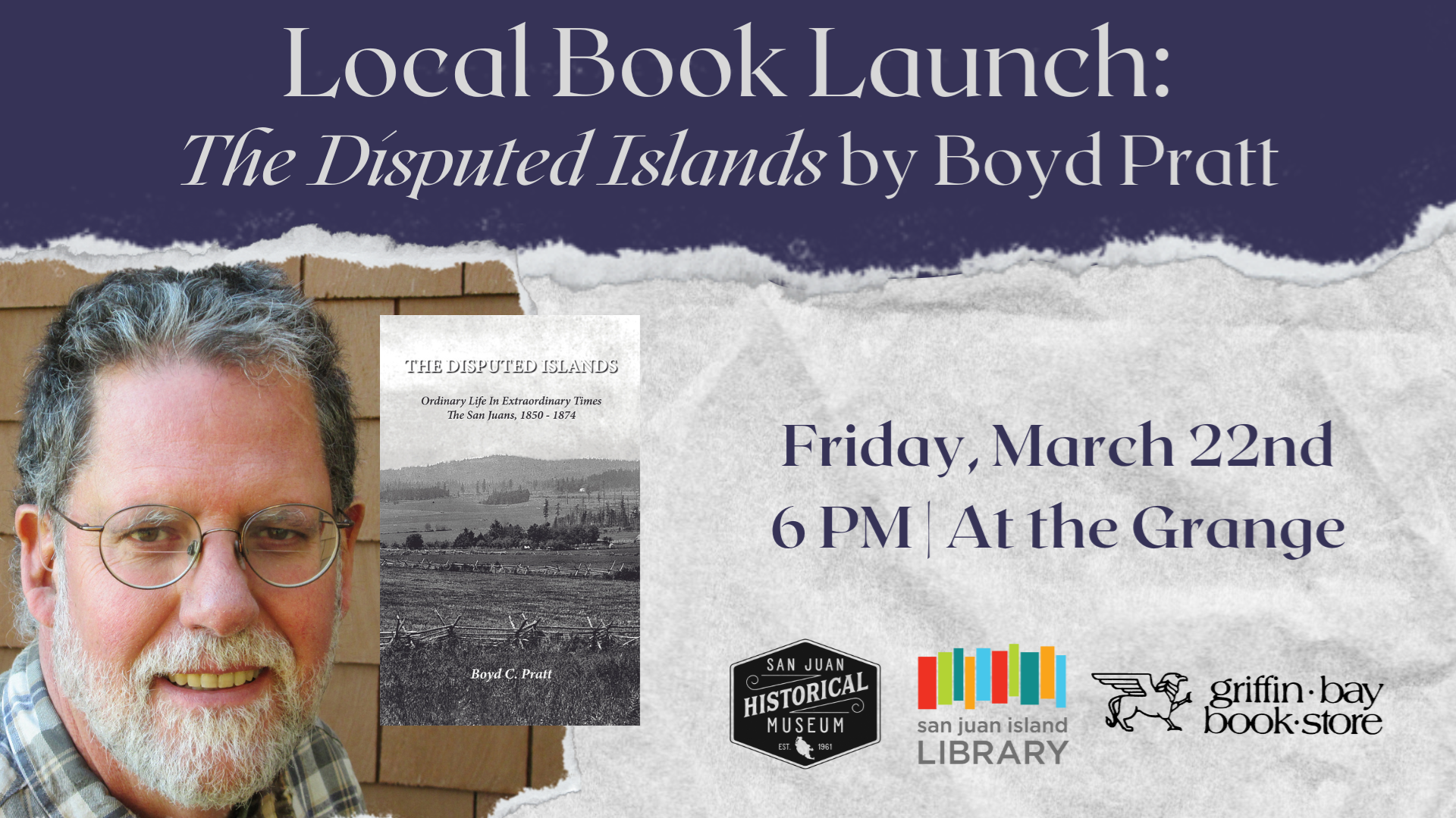 LOCAL BOOK LAUNCH The Disputed Islands by Boyd Pratt Join author and community member Boyd Pratt to celebrate and discuss his new book, The Disputed Islands: Ordinary Life in Extraordinary Times, The San Juans, 1850-1874.