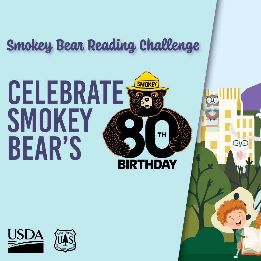 YOUTH SMOKEY READING CHALLENGE Celebrate Smokey Bear’s 80th Birthday! Complete a reading challenge this April to learn about wildfires and the environment. Pick up a packet at the library starting April 1 to get started, or pre-register online today!