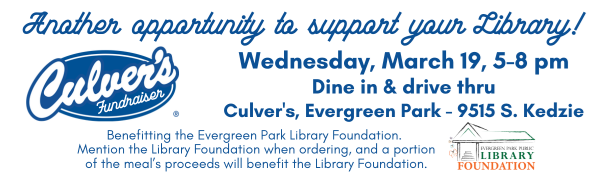 Evergreen Park Public Library Foundation 9400 S Troy Ave, Evergreen Park, Illinois 60805 708.422.8522foundation@evergreenparklibrary.orgevergreenparklibrary.org |