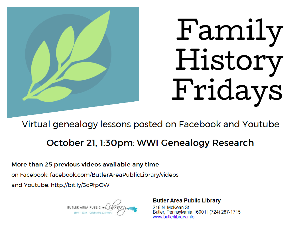 Bite-size virtual genealogy lessons, on Facebook and Youtube. More than 25 past videos available on-demand.