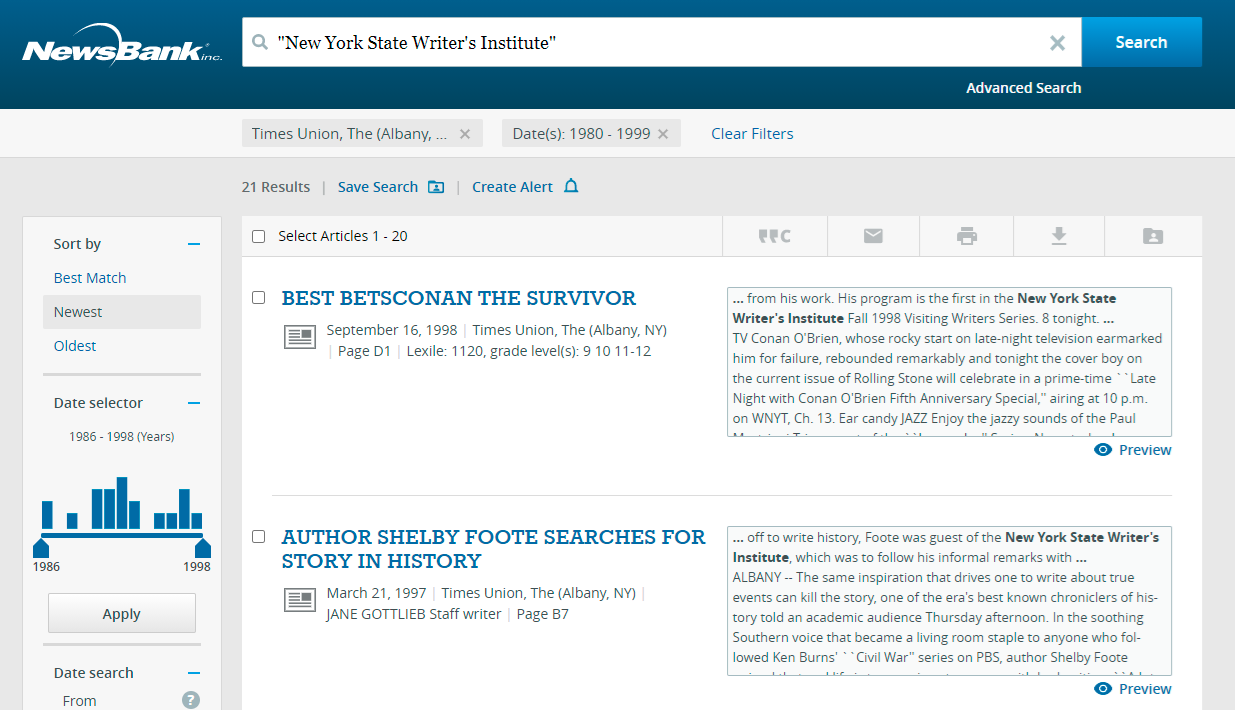 America's News Full text of hundreds of newspapers including Troy Record and Saratogian