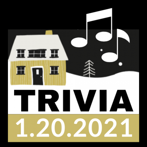A Night of Music TriviaWednesday, January 20, 7:00-8:30 pm Join us for a Virtual Trivia Night on Zoom. Teams are encouraged! Chose a captain and a fun and unique team name and register your team. (Only one person should register for each team.)