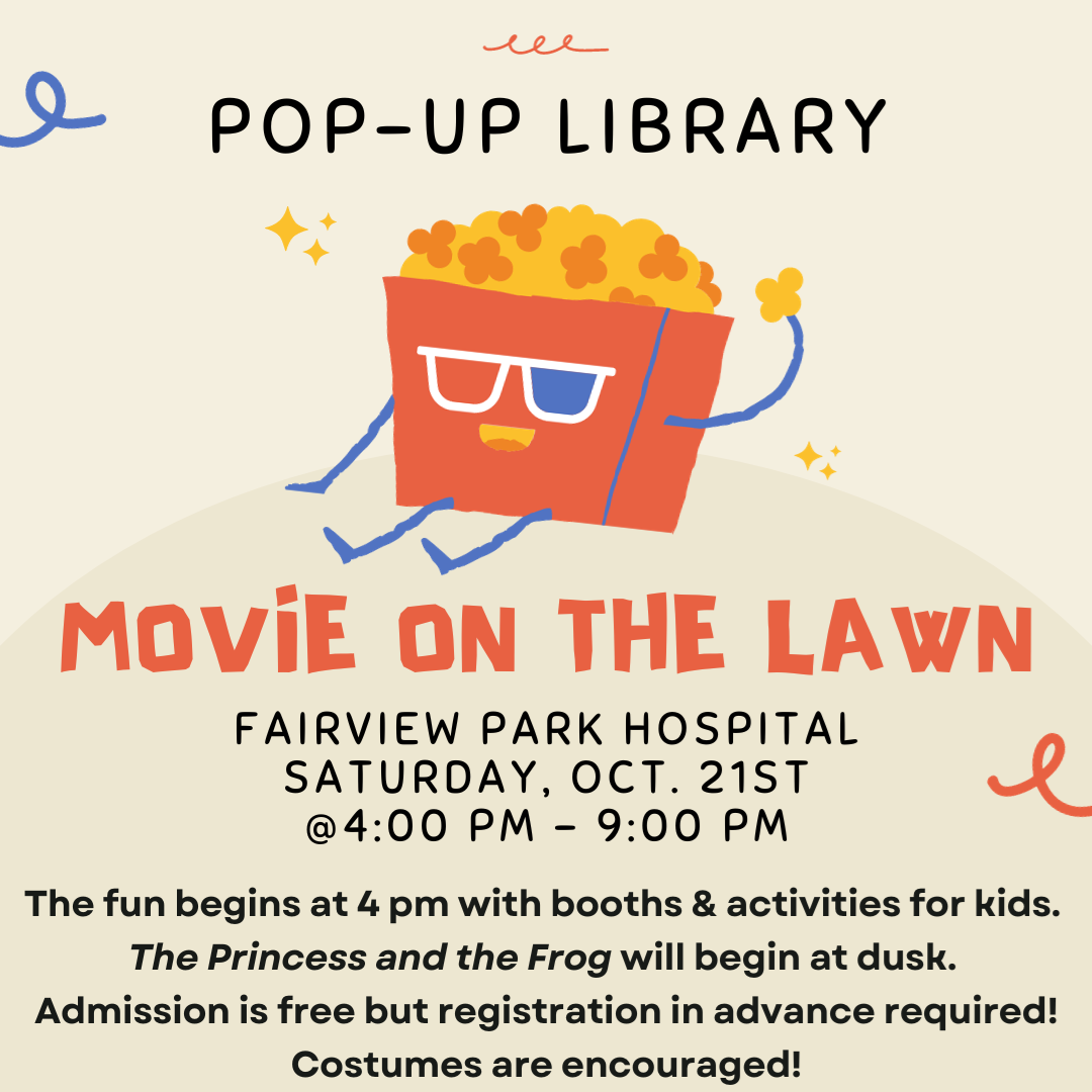 Saturday, October 21st 4:00pm - 9:00pm Fairview Park Hospital Join us on this FREE evening of family fun with activity booths and trick-or-treating. The Princess and the Frog will begin at dusk. Costumes are encouraged! Advance registration is required.