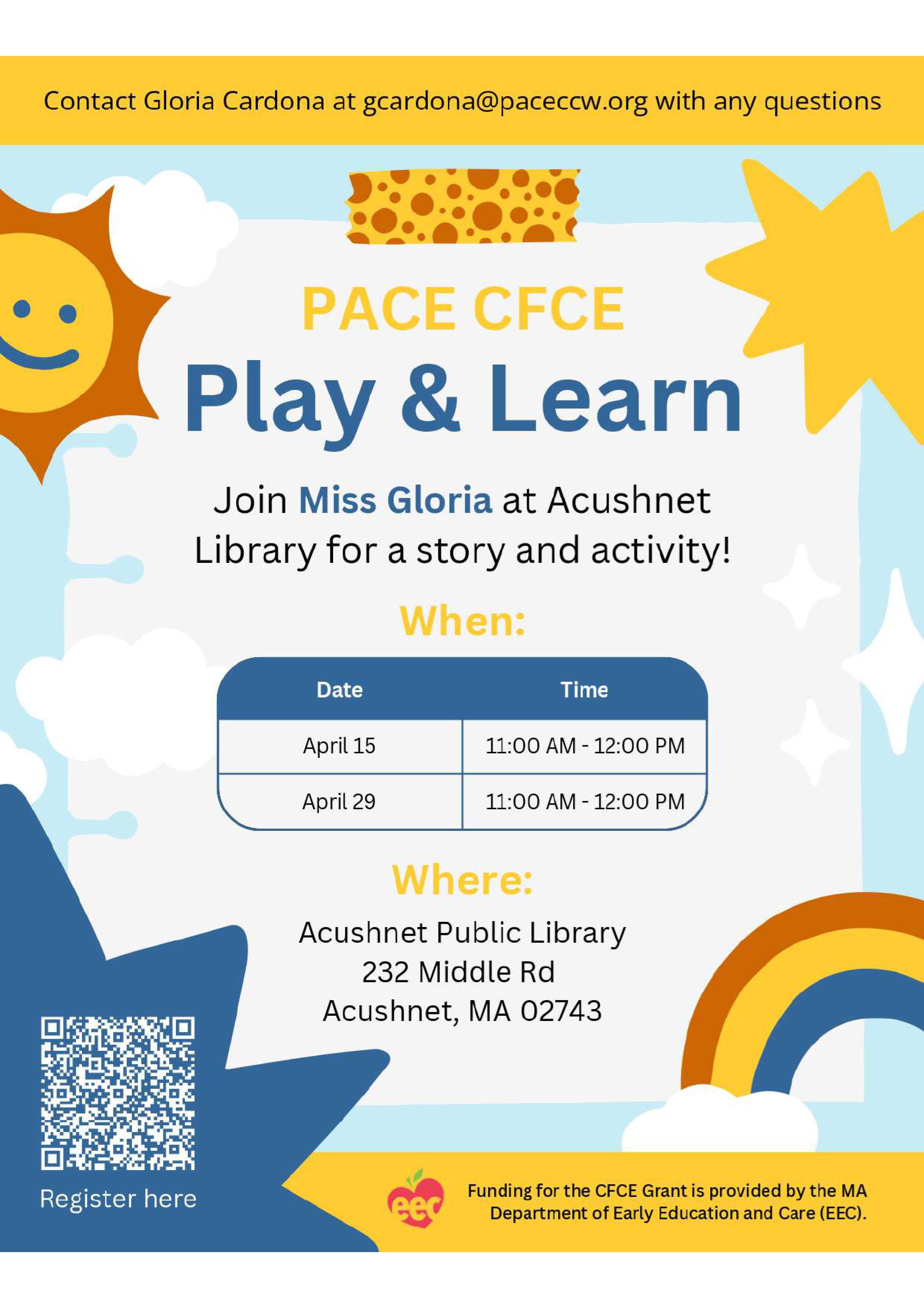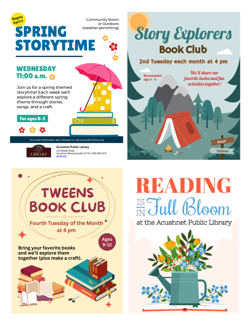 Acushnet Public Library232 Middle Road, Acushnet, Massachusetts 02743 | 508-998-0270https://acupl.org/ |